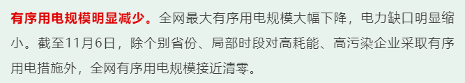 伴隨著國家電力保供(gòng)力度不斷加大,煤炭儲存量不斷突破增長,電力方麵自然也得到了有(yǒu)效緩解(jiě),國家電網於11月7日發布消息表示: